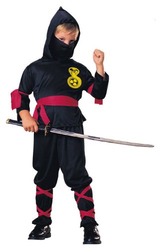 This Child Black Ninja Costume will make a young fan feel like a real Ninja! Geared with a Hooded Shirt, face scarf, pants, waist sash, and contrasting arm and leg ties in red, this costume will inspire your child with the Ninja spirit. Weapon not included.Available at Amazon